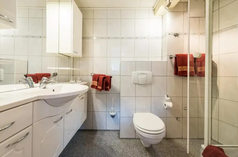 Mein Zimmer war im zweiten Stock, was mit Gepäck, Dackel, den ich tragen muss und Knieproblemen nicht leicht zu bewerkstelligen war. Am schwierigsten für mich war die Tür am Ende der Treppe, die auf den Flur zum zweiten Stock führte.